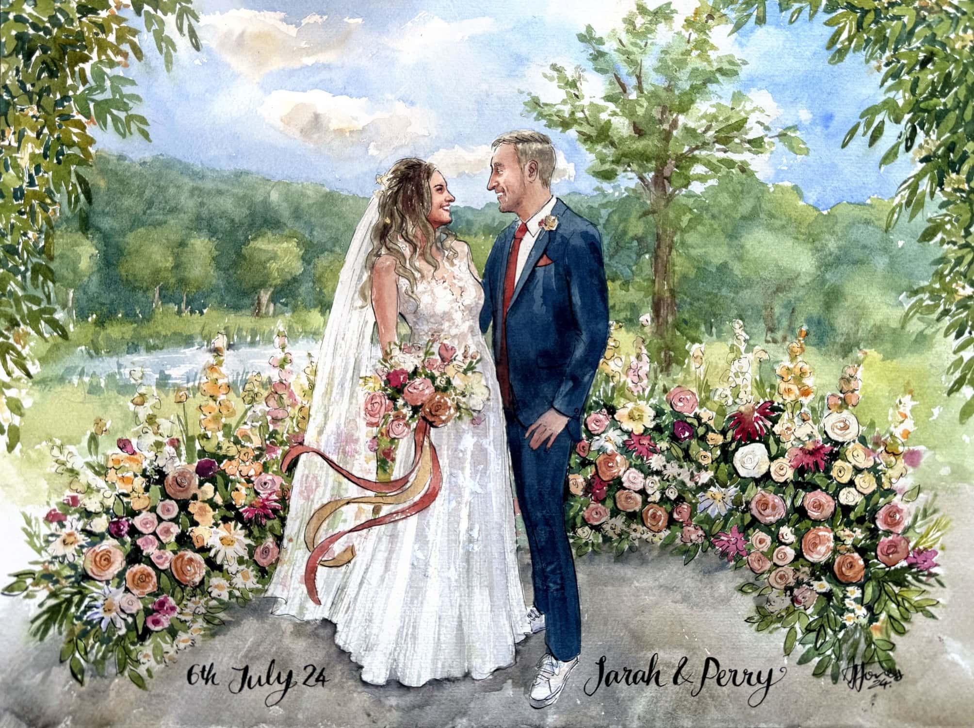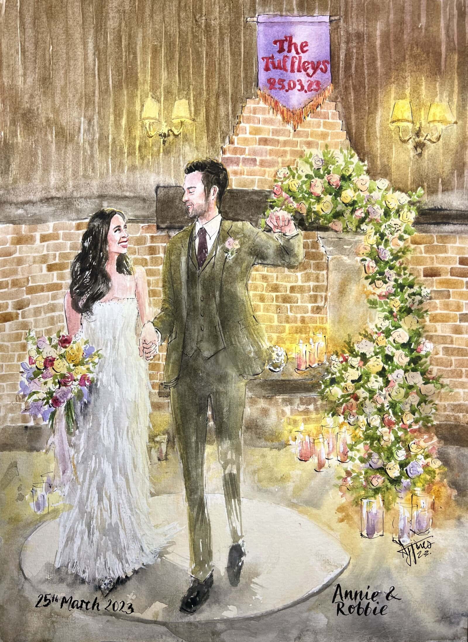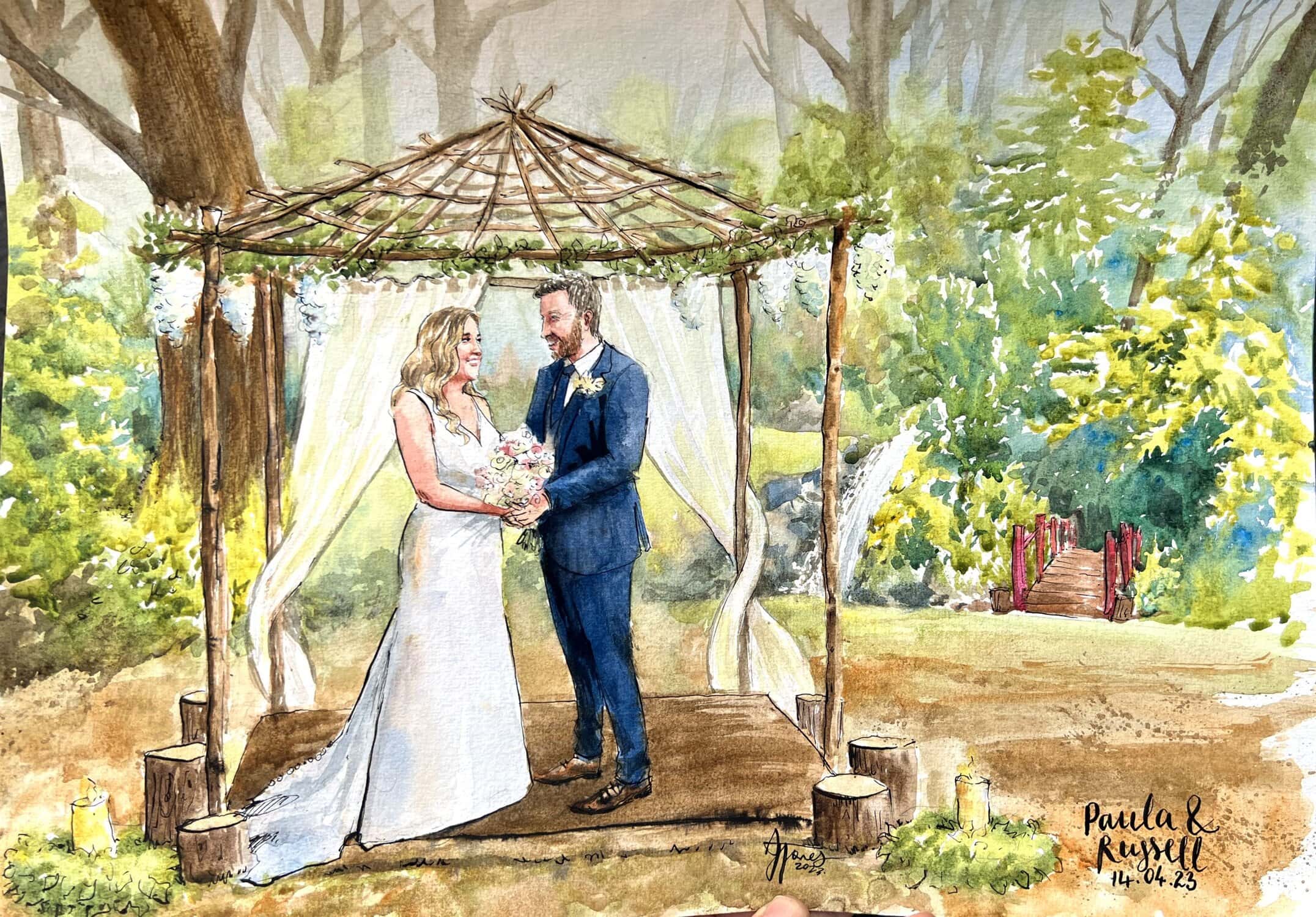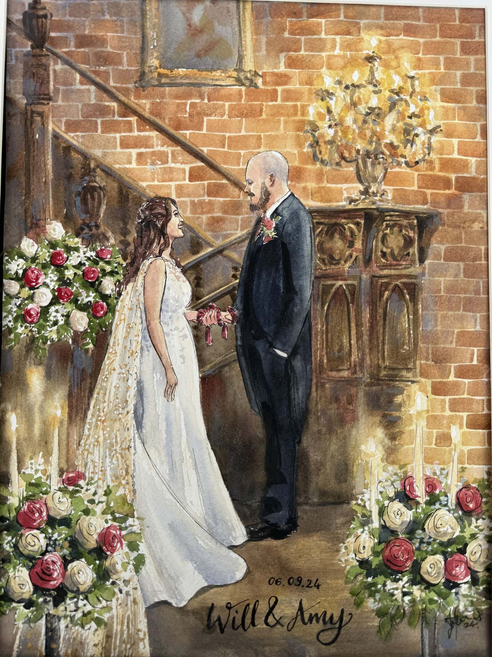 A bespoke wedding painting created live on your wedding day, available across the UK and Europe.