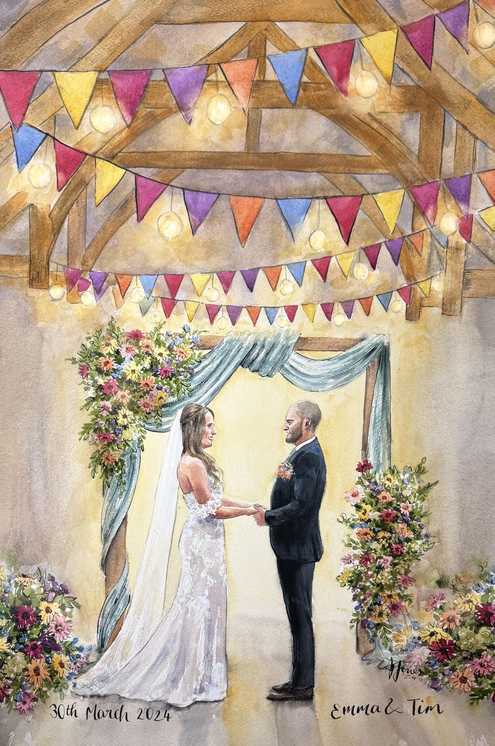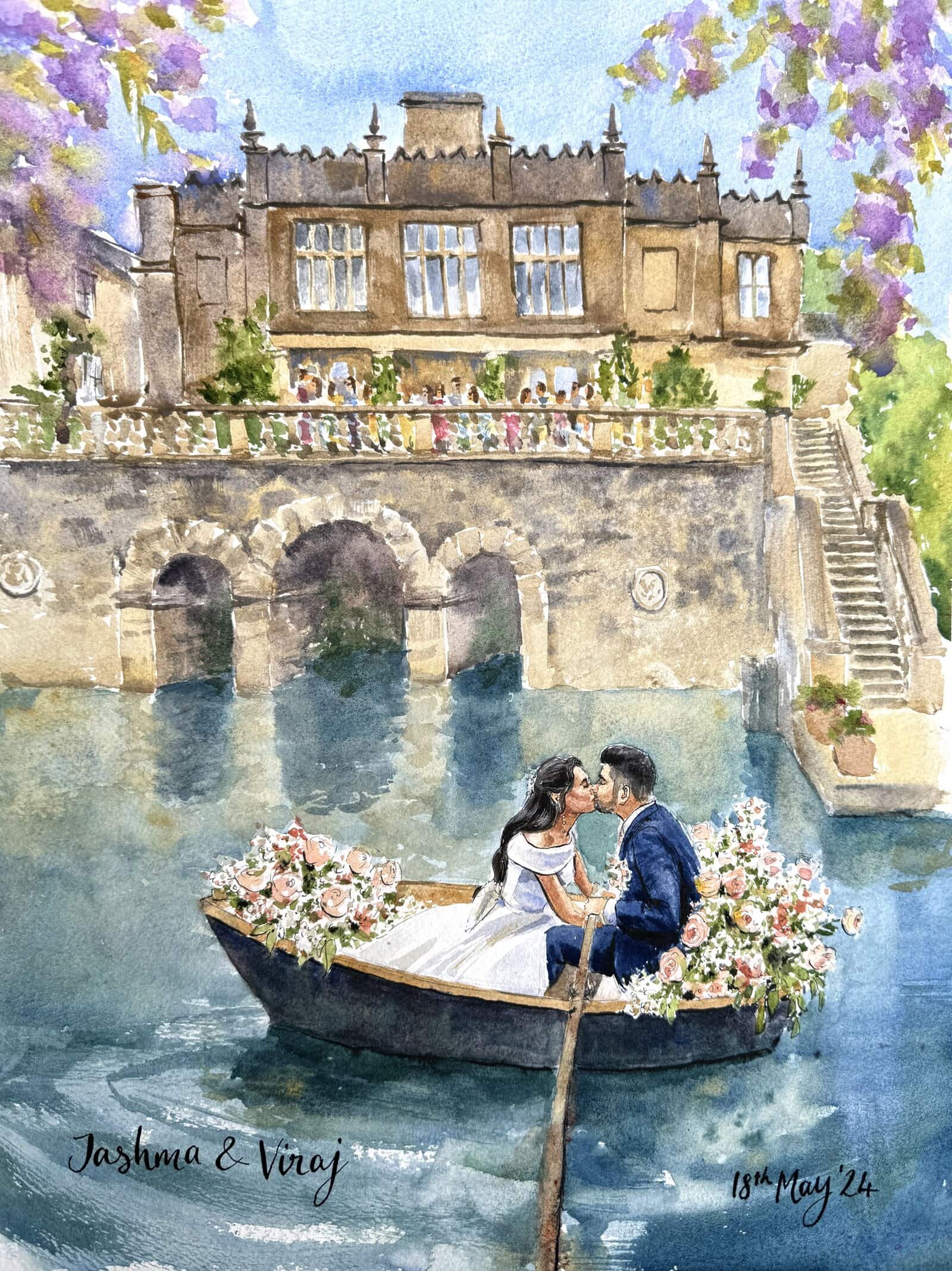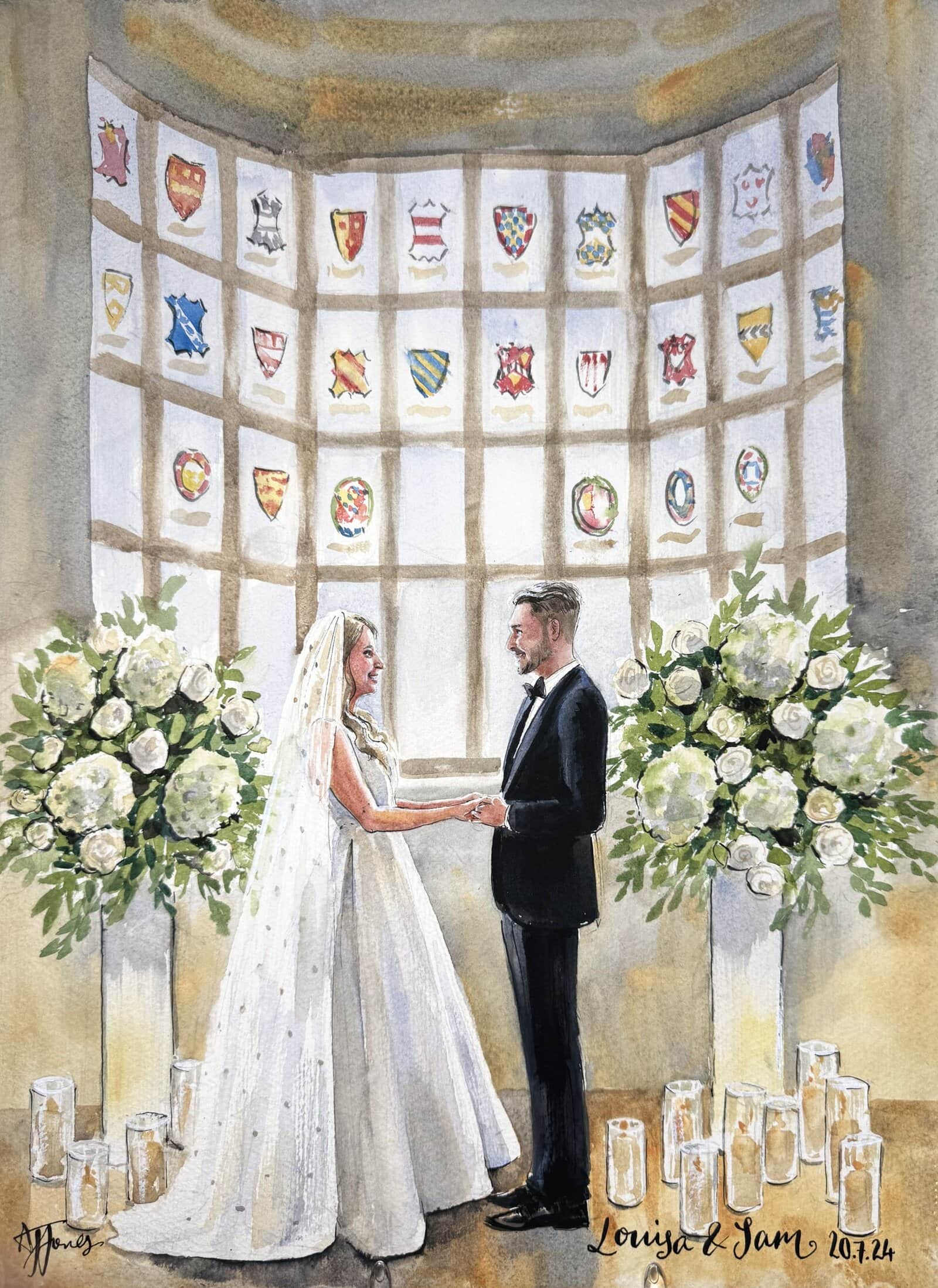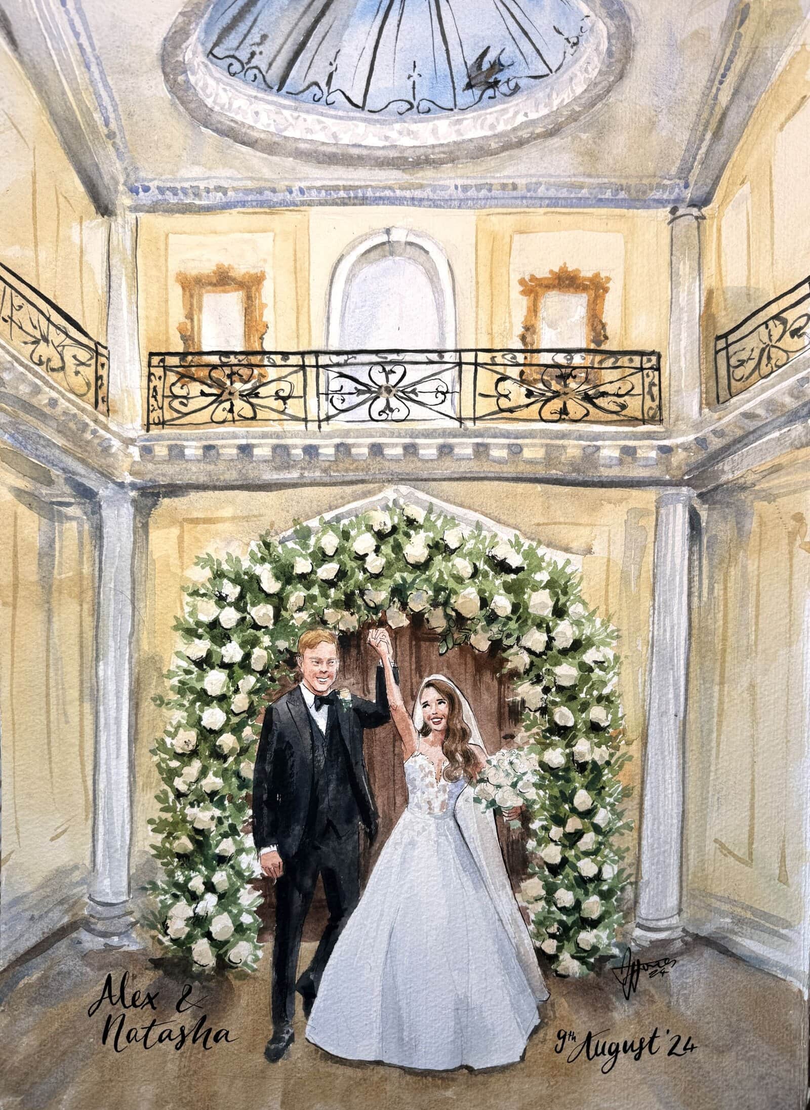 A bespoke wedding painting created live on your wedding day, available across the UK and Europe.
