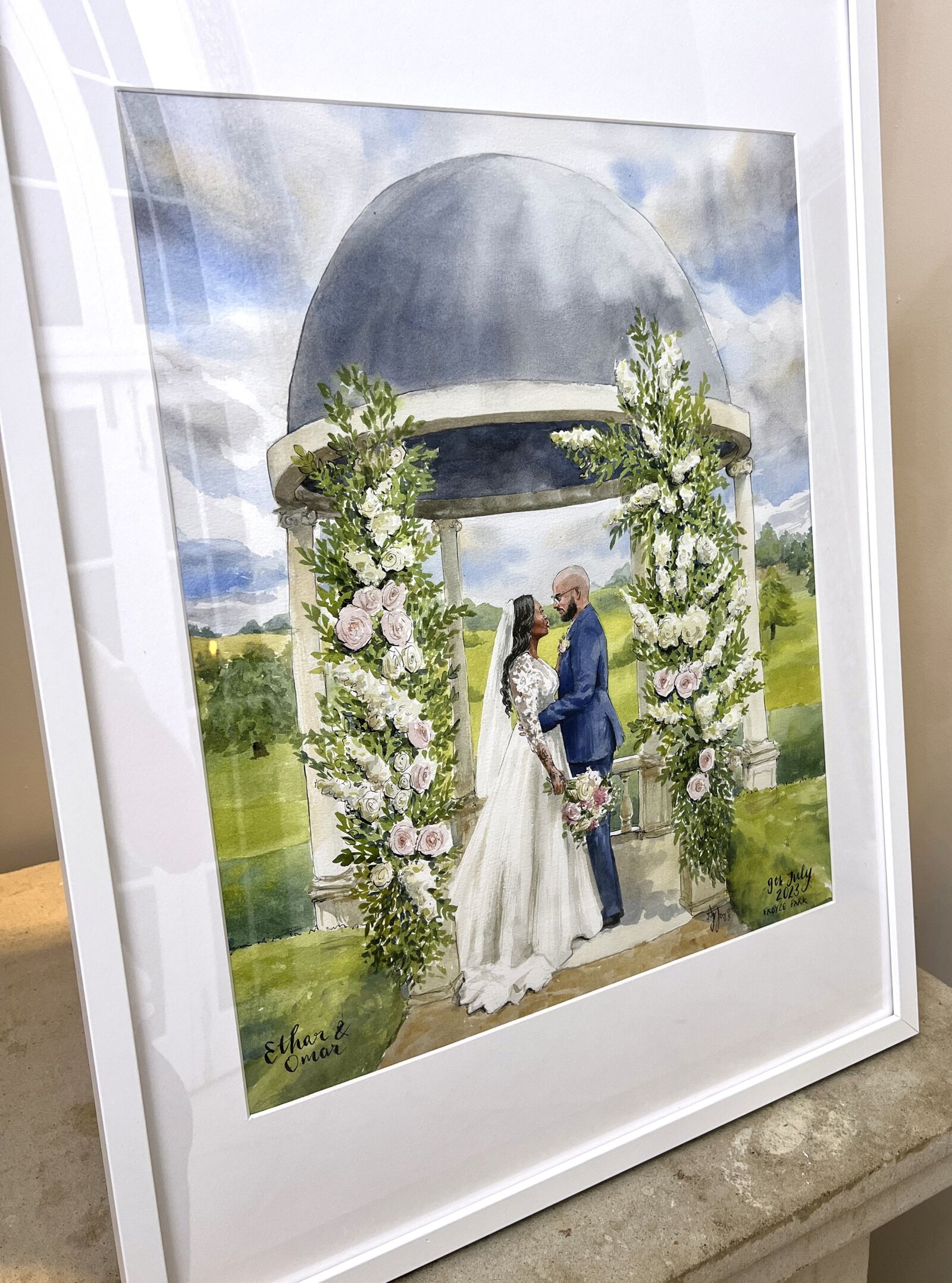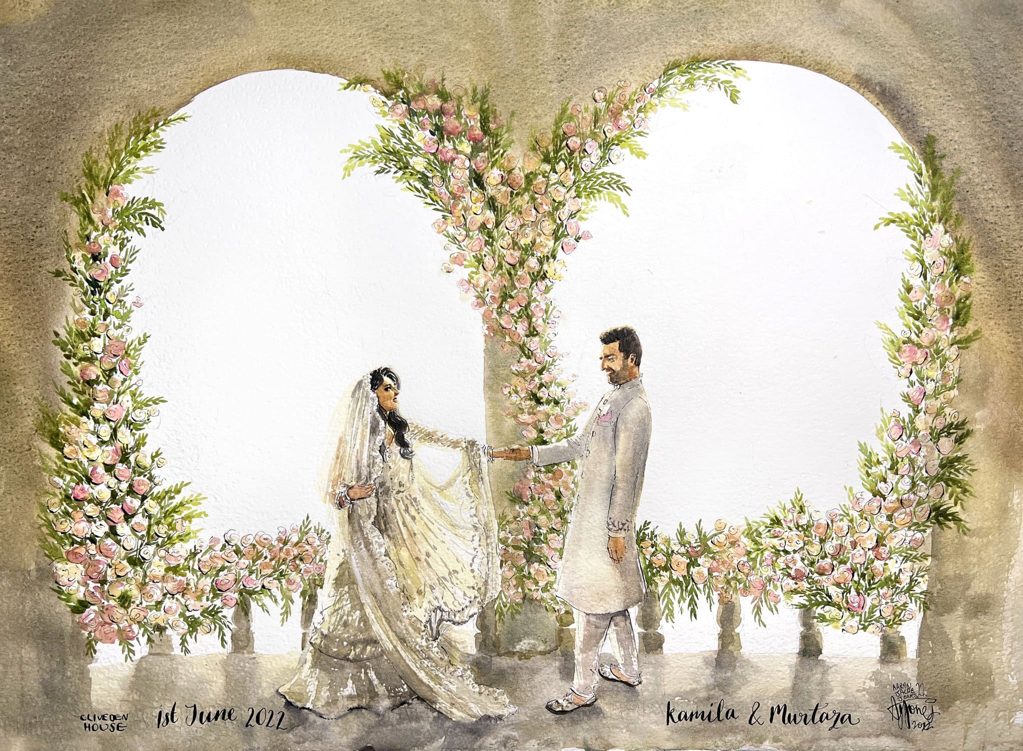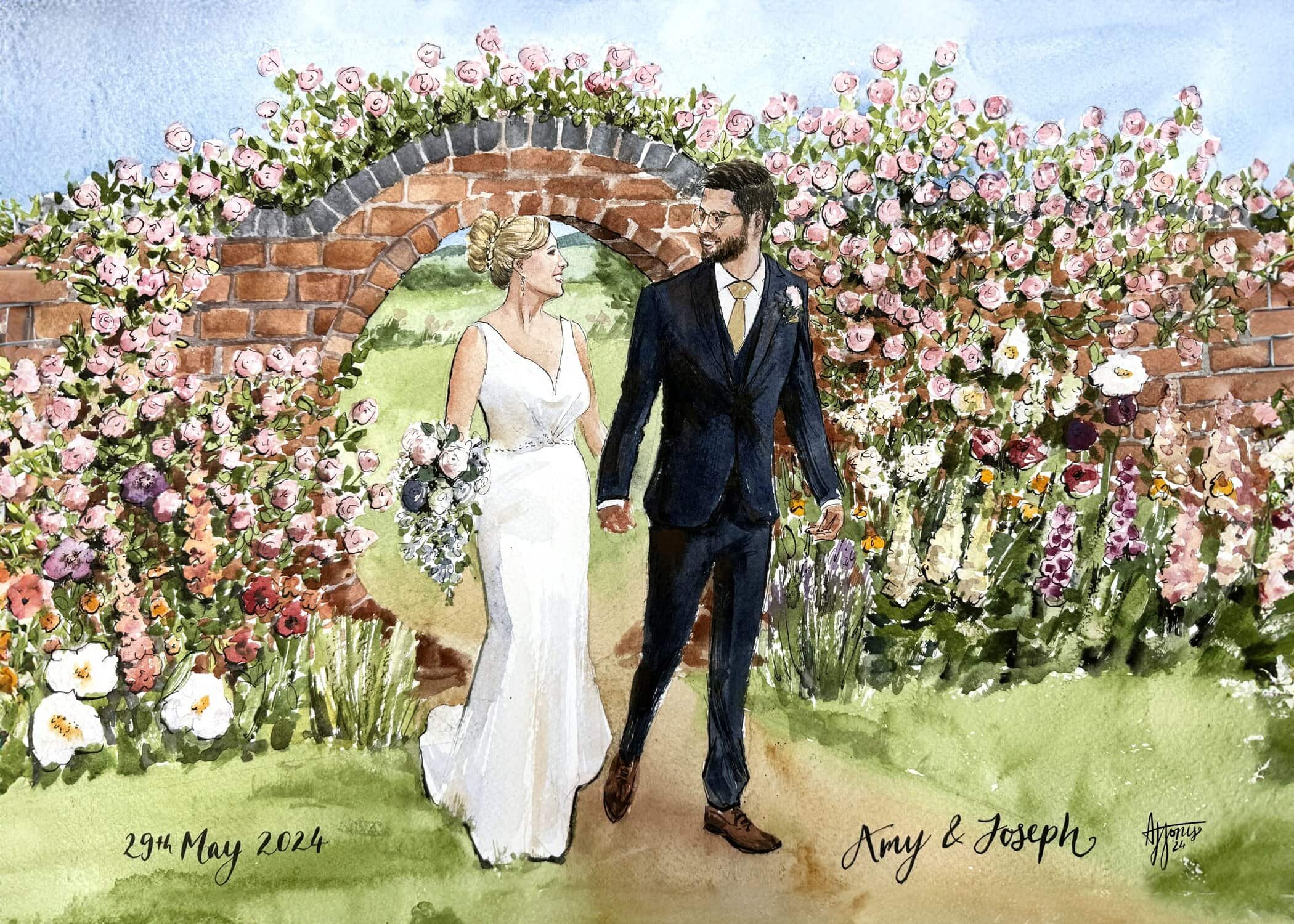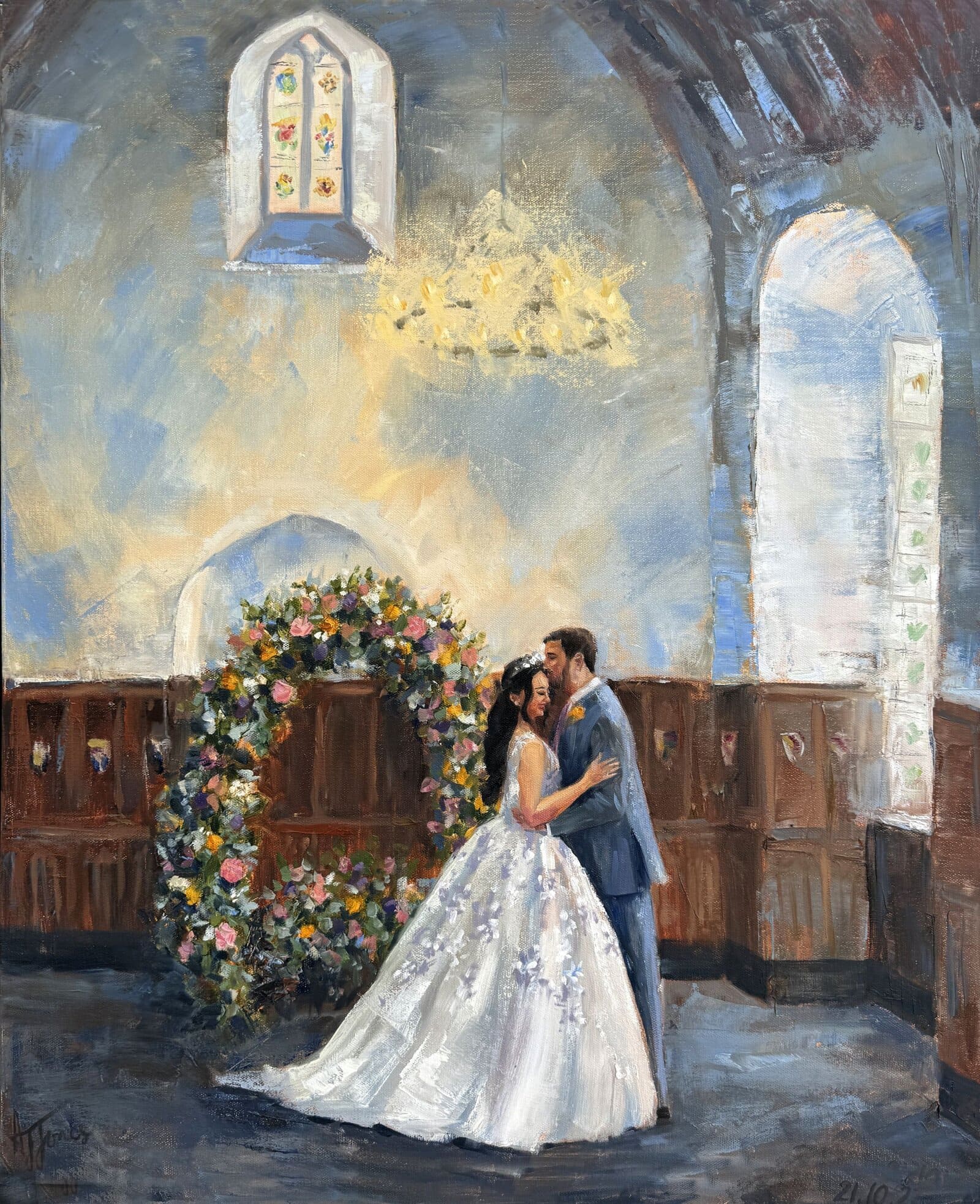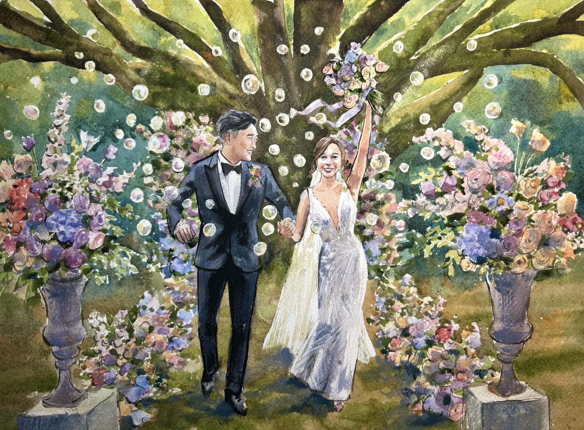A bespoke wedding painting created live on your wedding day, available across the UK and Europe.