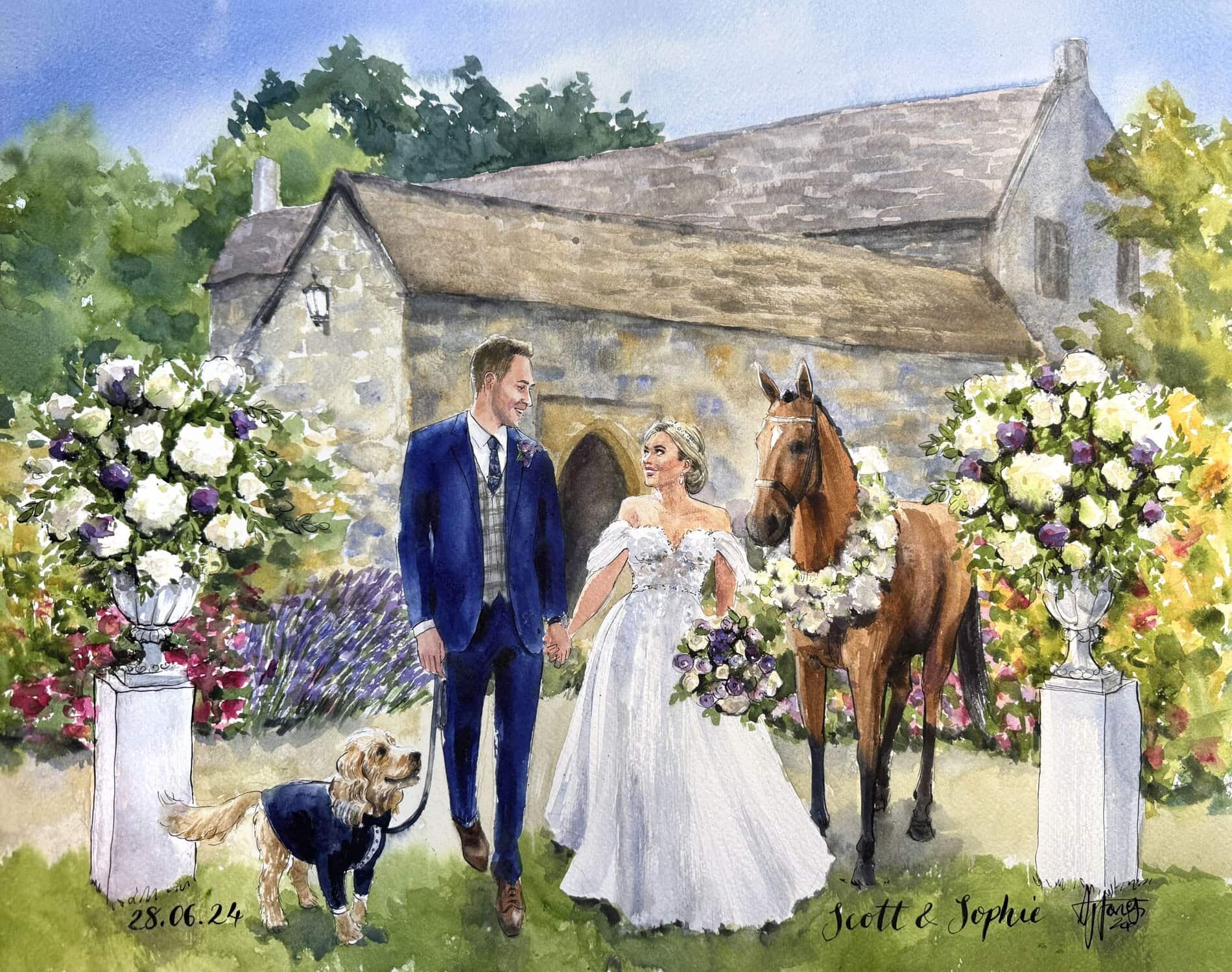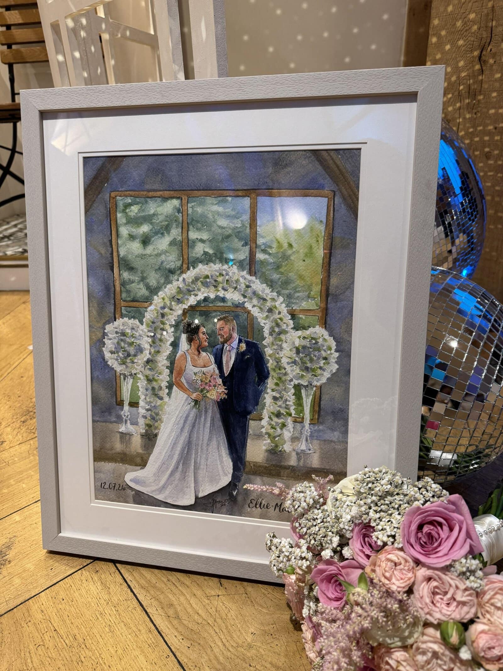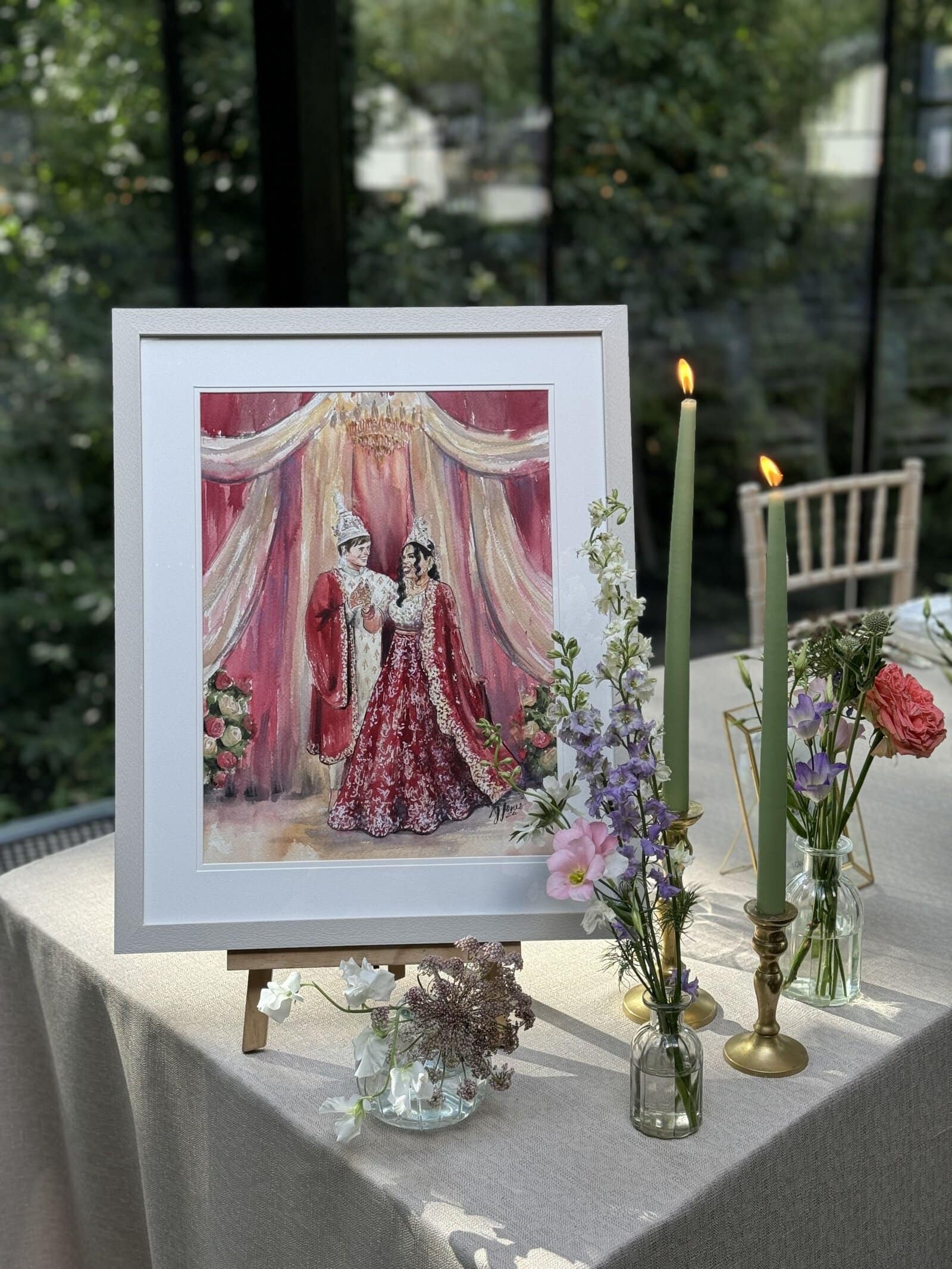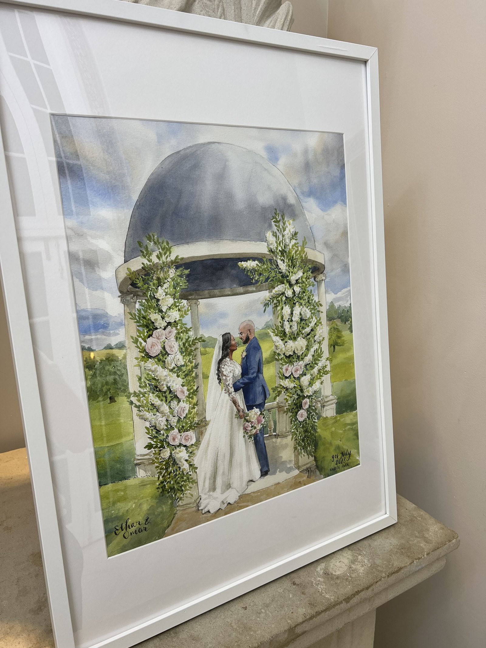 A bespoke wedding painting created live on your wedding day, available across the UK and Europe.