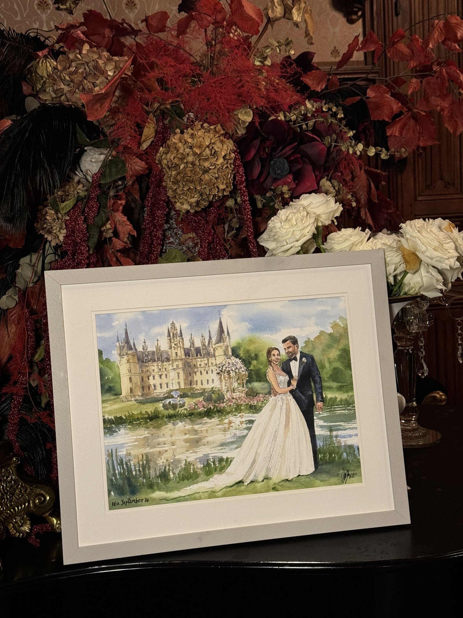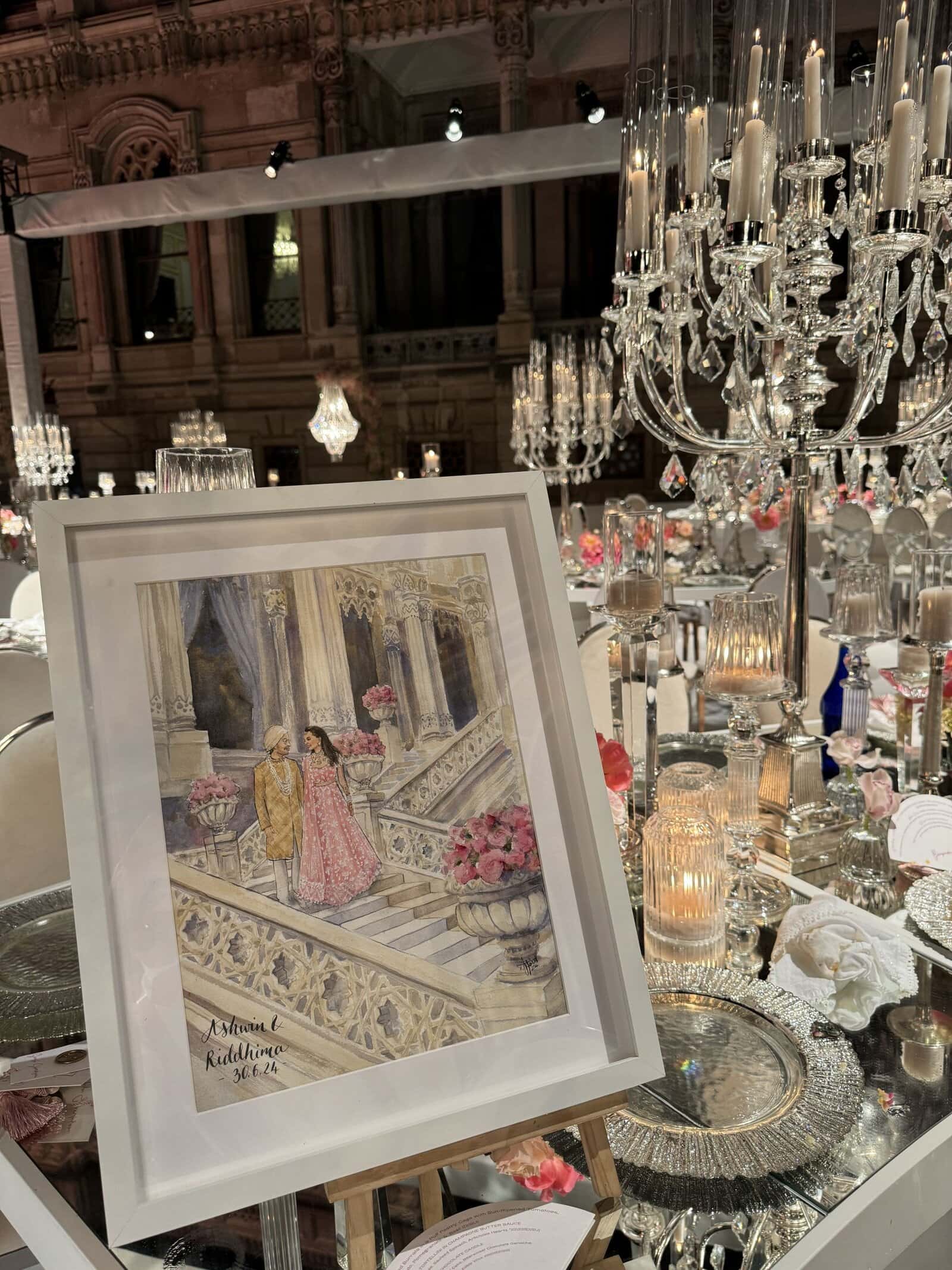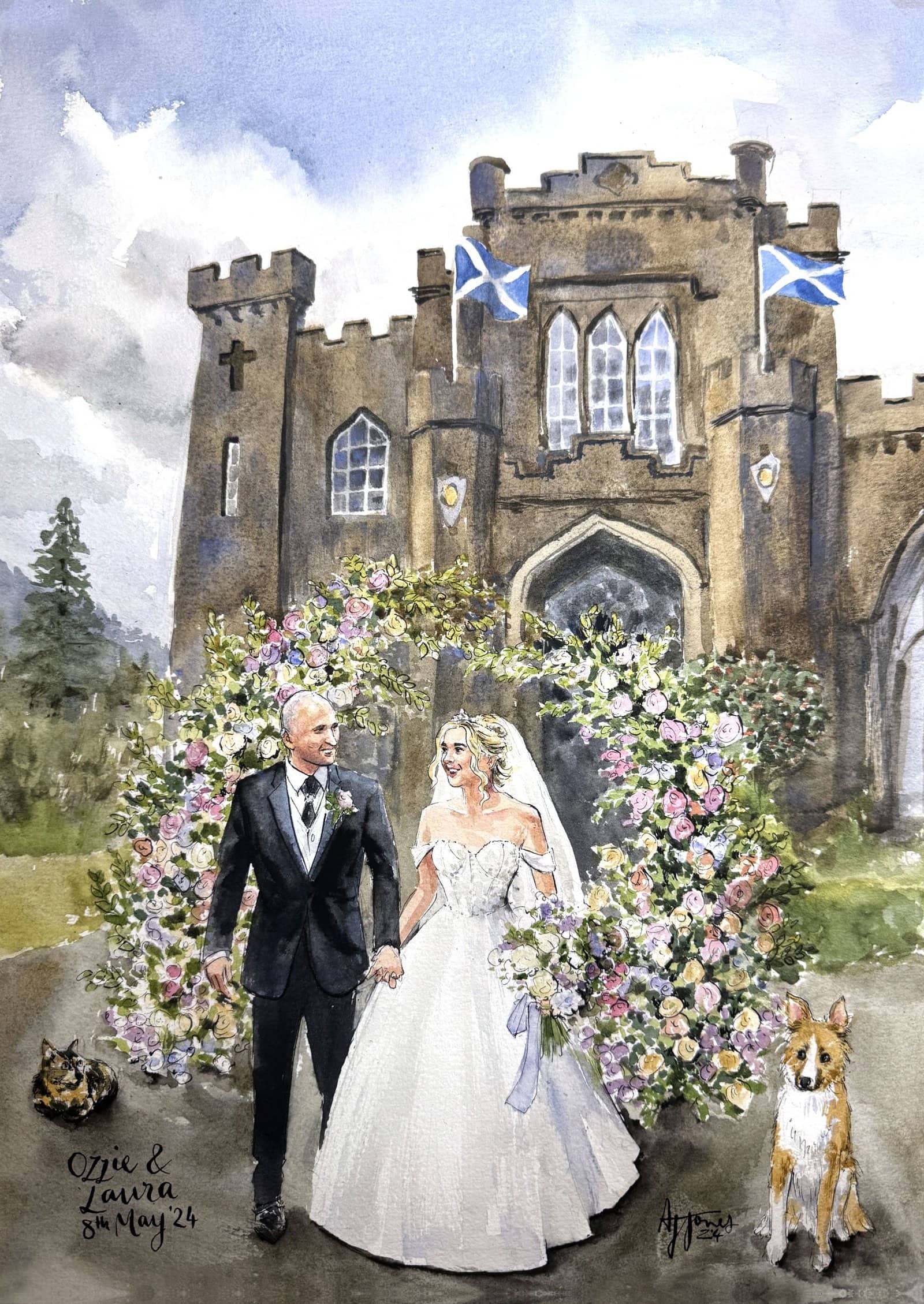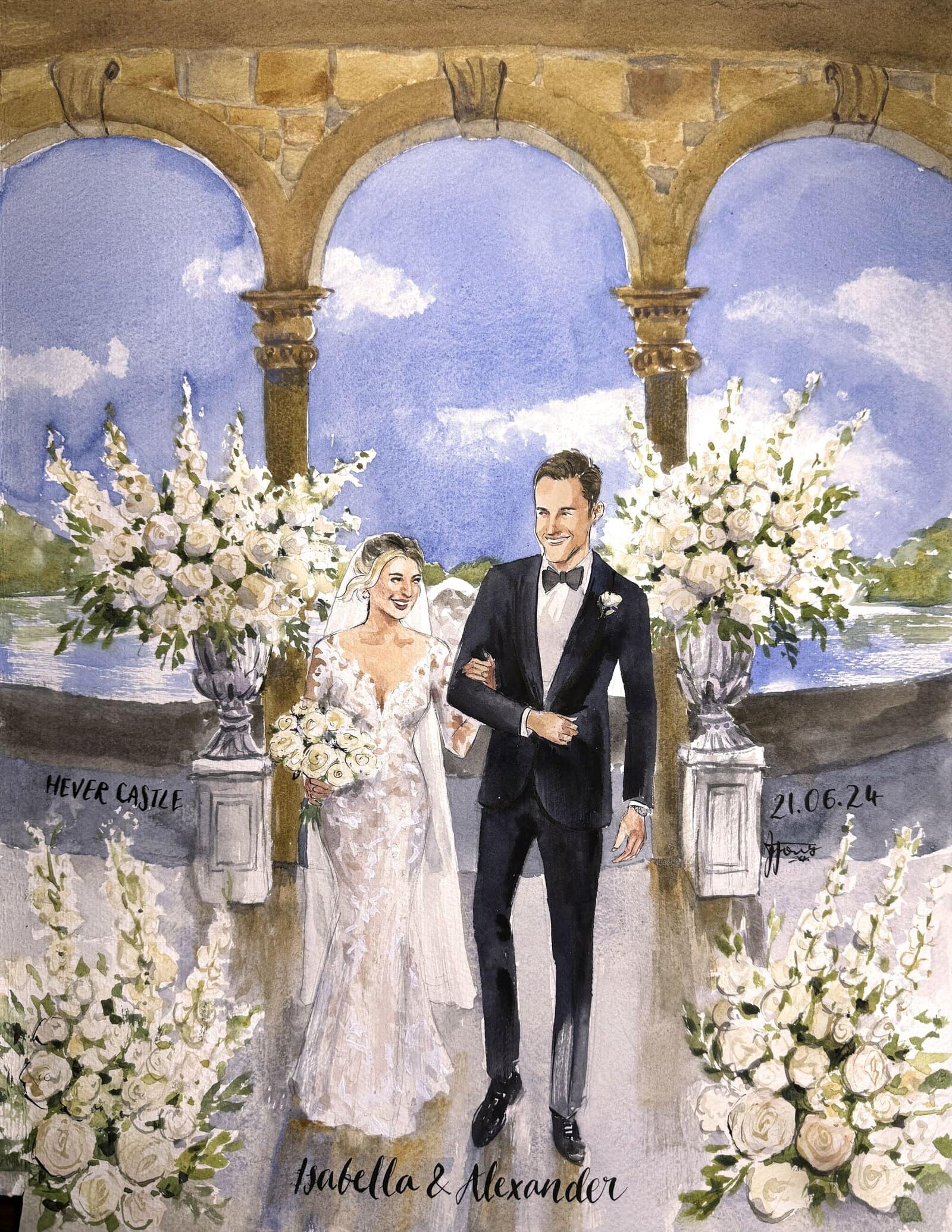 A bespoke wedding painting created live on your wedding day, available across the UK and Europe.